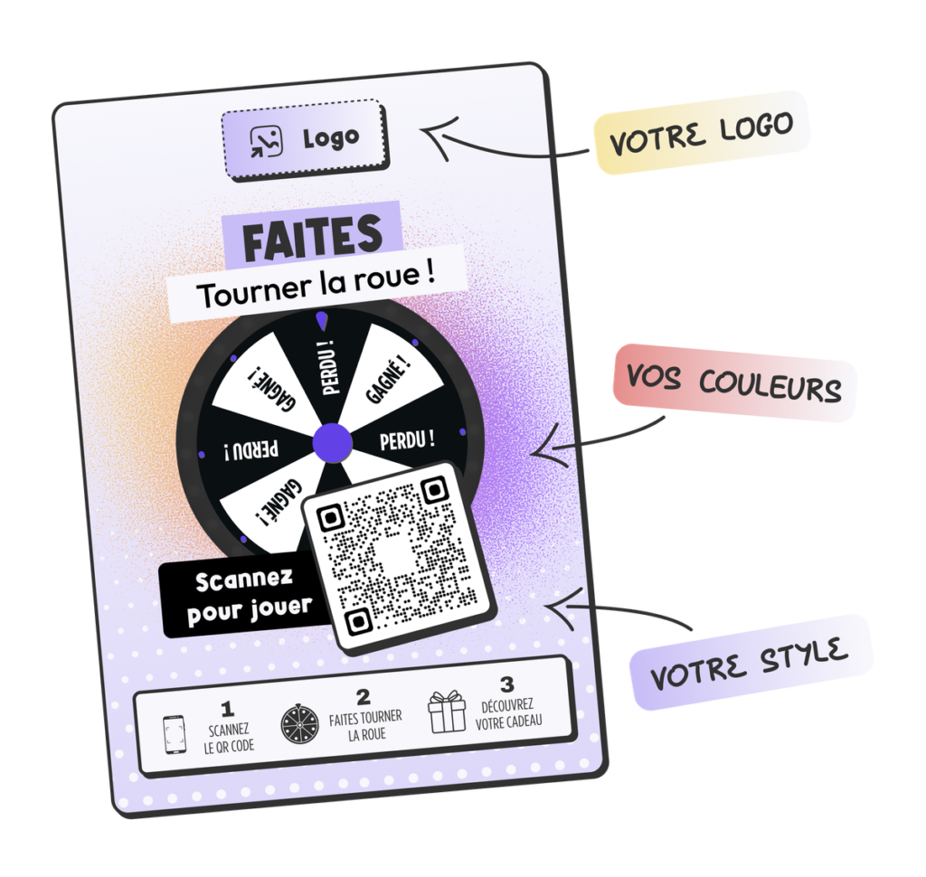 Vos clients scannent un QR code présent dans votre établissement pour accéder à une roue de la chance en ligne.