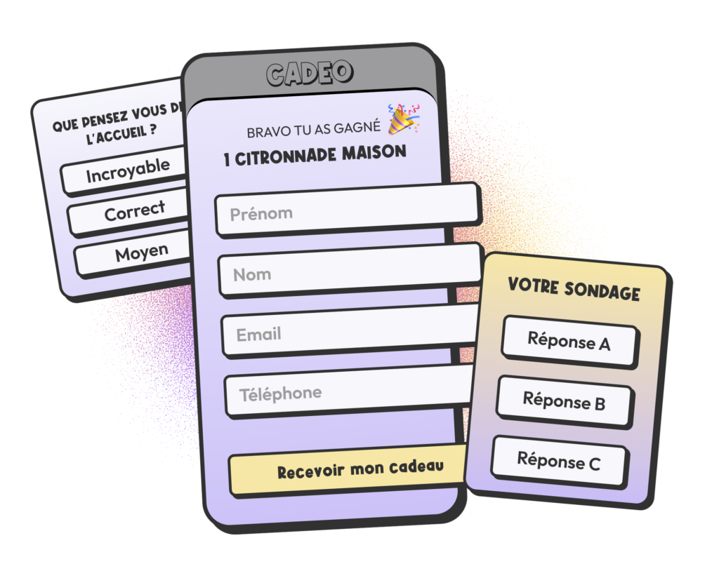 Collectez les informations des gagnants et enrichissez votre base de données pour vos futures campagnes marketing. Consentement opt-in et 100 % conforme au RGPD.